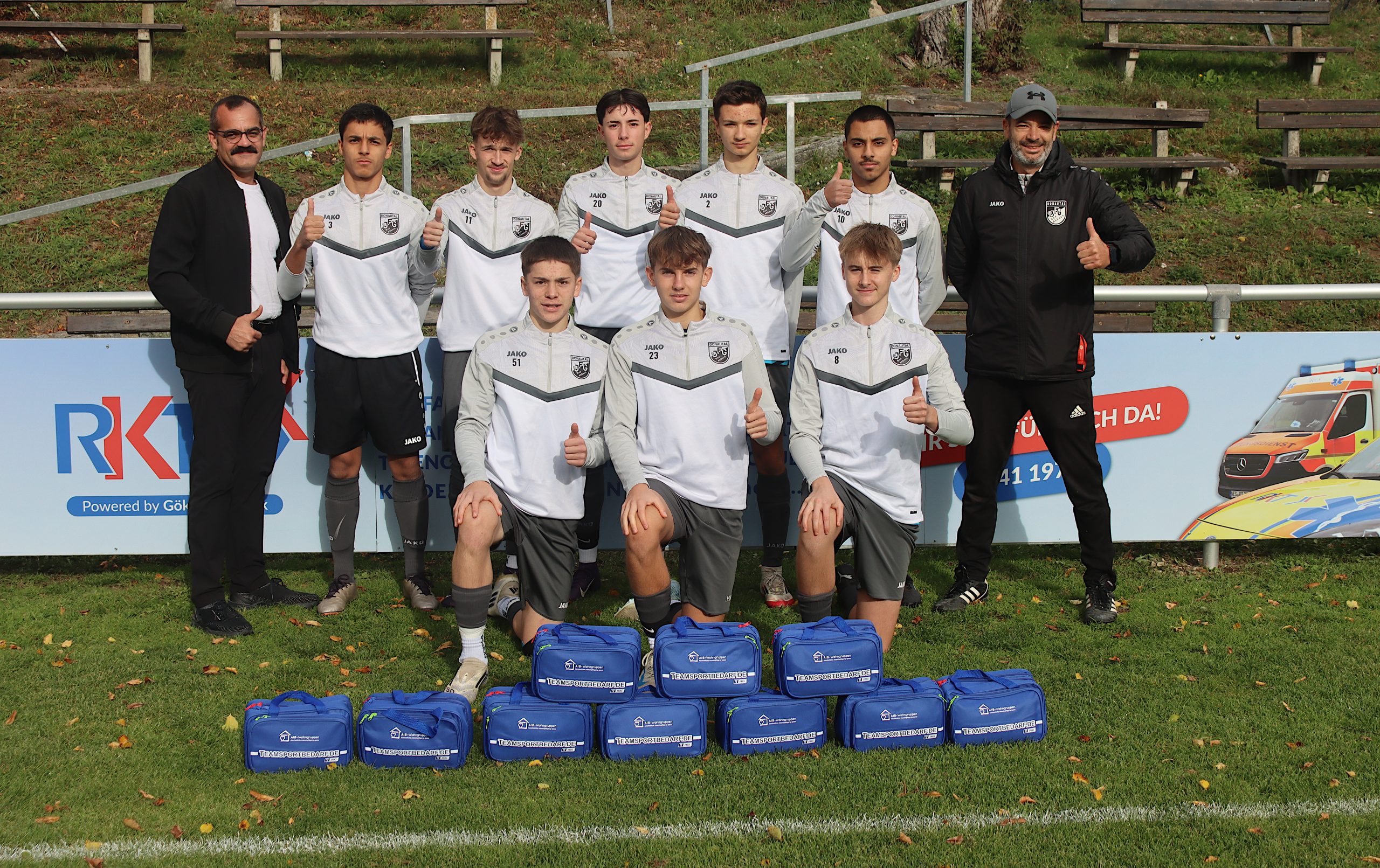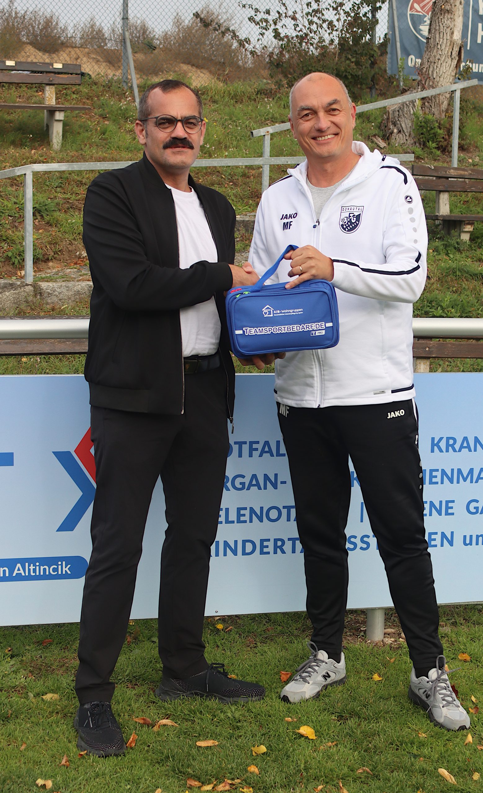 Herr Gökhan Altincik spendet für alle Mannschaften der JFG Donautal Bad Abbach e.V. jeweils eine Teamsporttasche. Darin enthalten sind für den Trainings- und Spielbetrieb unerlässliche Gegenstände wie Kühlpacks, Eis-Spray, Sport-Gel und Warm-Up-Gel. Natürlich sind Verbandsmaterial und Pflaster mit in den Taschen enthalten. Dadurch ist nun jede Mannschaft unserer JFG für die Erstversorgung bei Sportverletzungen gut ausgestattet. Unsere Bilder zeigen Herrn Gökhan Altincik zusammen mit Vorstand Michael Fehrer bei der Übergabe und weitere Bilder. Die JFG bedankt sich sehr bei Herrn Gökhan Altincik. AIB Wohngruppen [...]