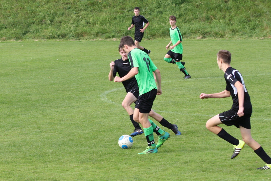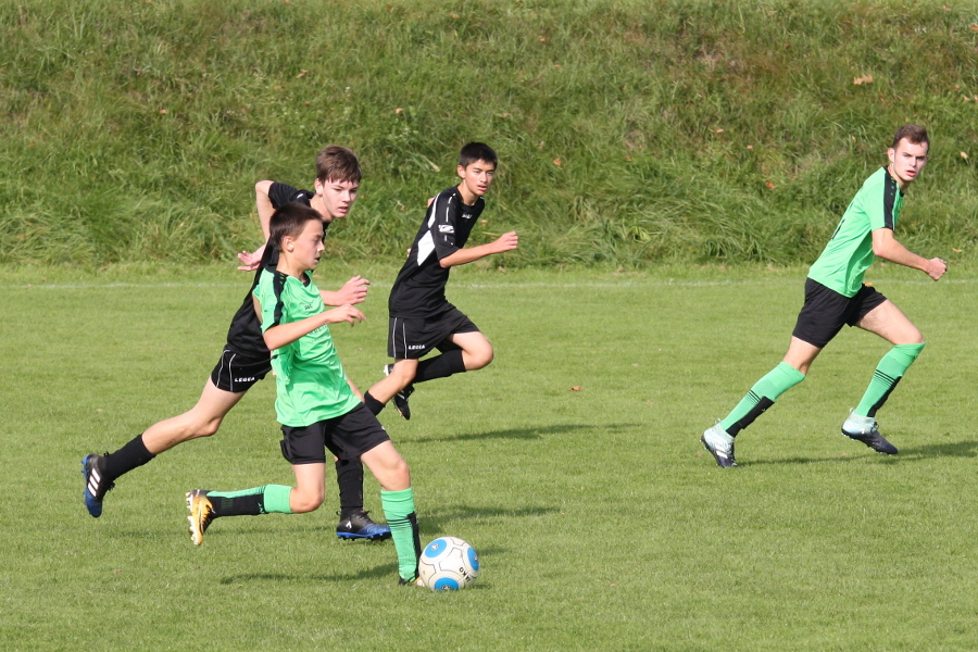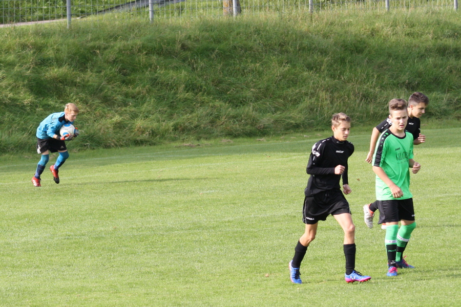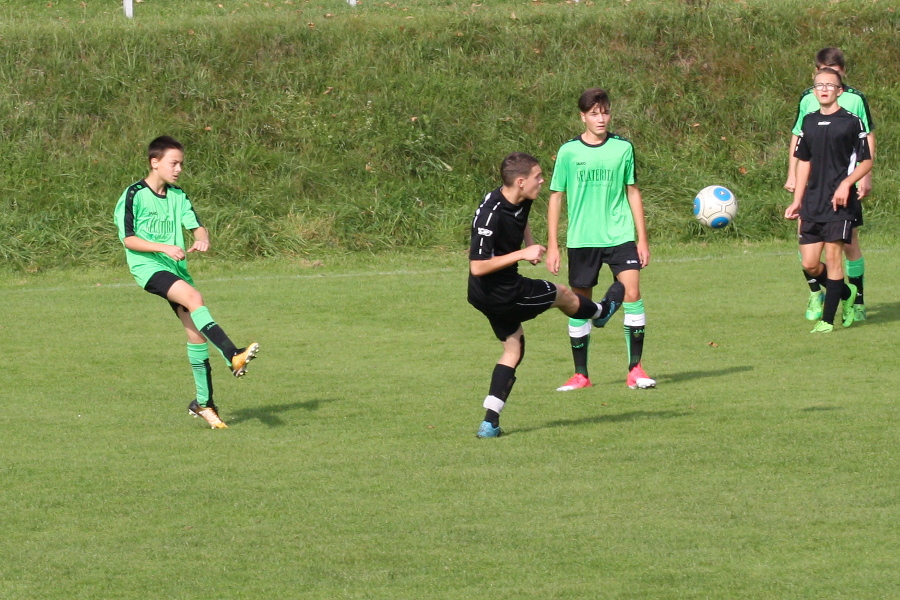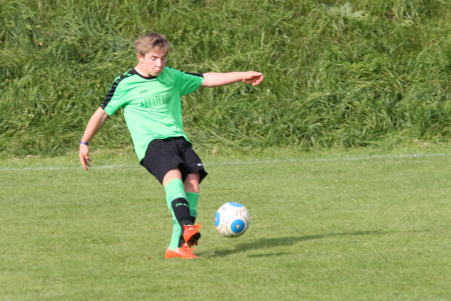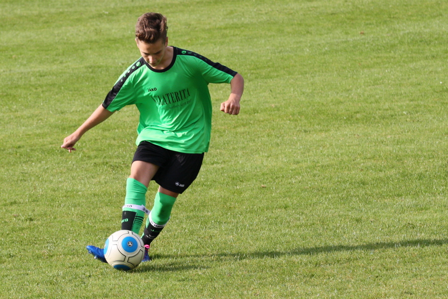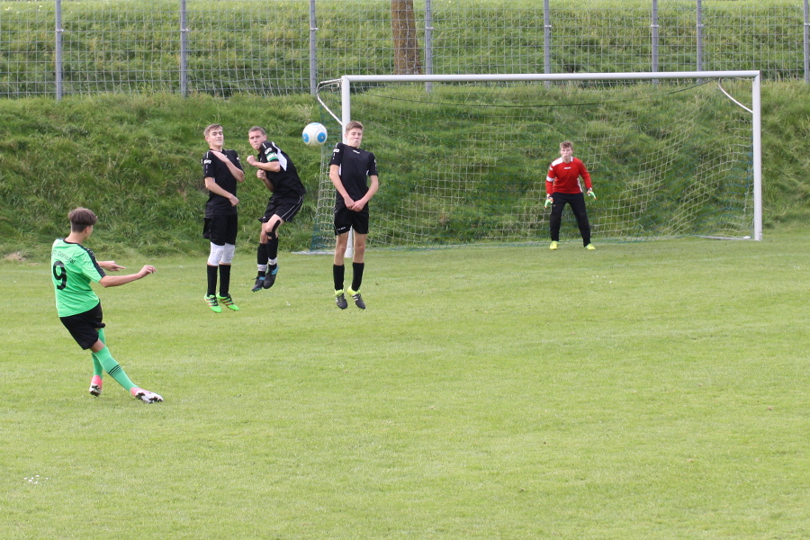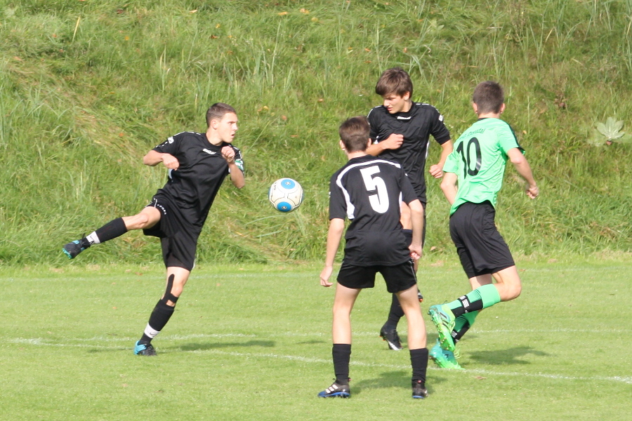 Nach einem Foul an Oli führen die Jungs den Freistoß schnell aus und kombinieren sich herrlich durch die gegnerischen Abwehrreihen. Flo vollendet diesen wunderschönen Angriff zum 4:0. |