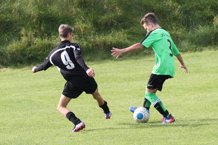 9′ | Joshi schickt Leon, der schön nach innen flankt. Flo hat Probleme bei der Ballannahme und bekommt den Ball nicht unter Kontrolle. Das hätte die Führung sein müssen. |